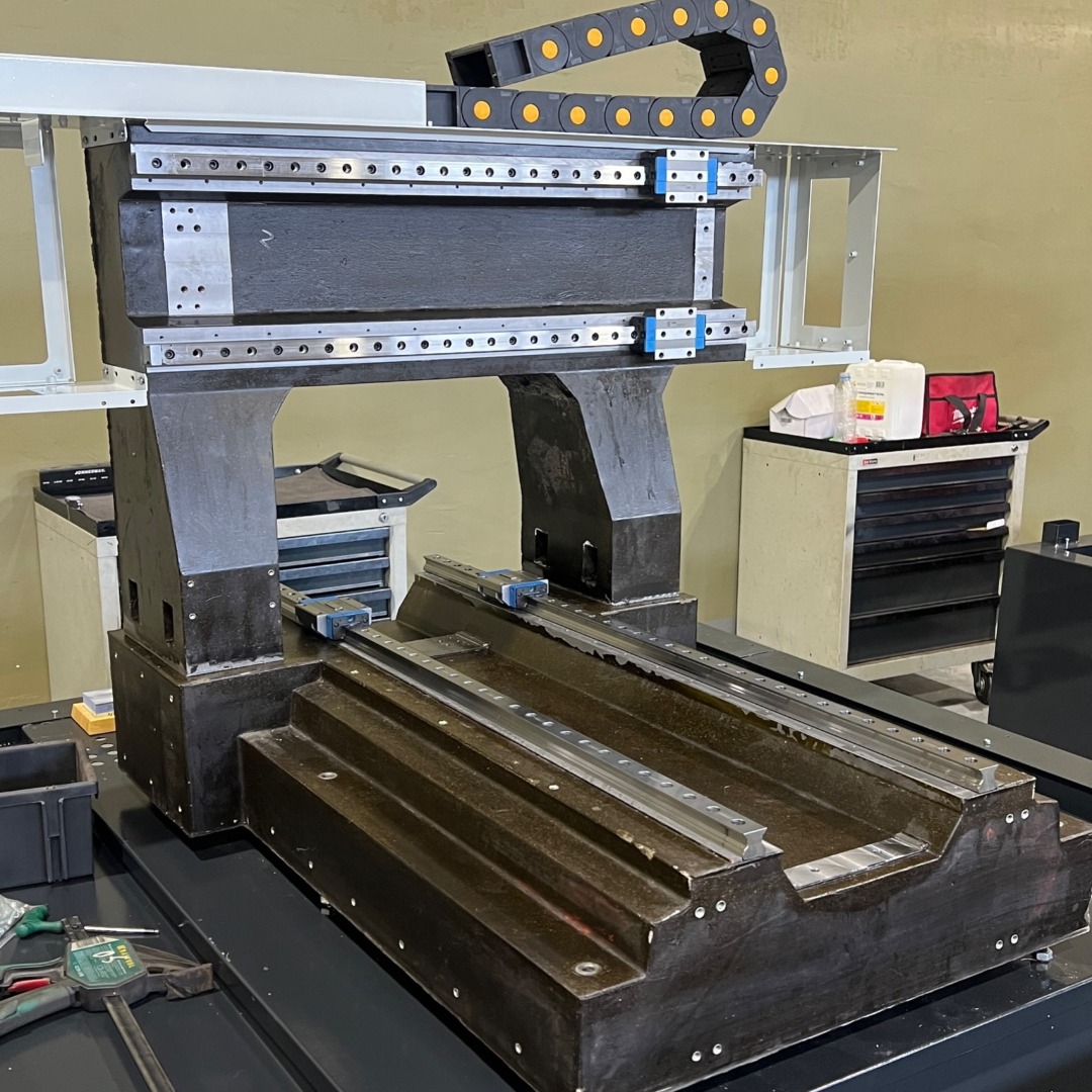 Изготовление станины из полимербетона требует меньше времени и усилий. Уже через месяц после заливки материал готов к эксплуатации на станке. Для сравнения: чугунная станина требует 6 месяцев подготовки перед использованием.